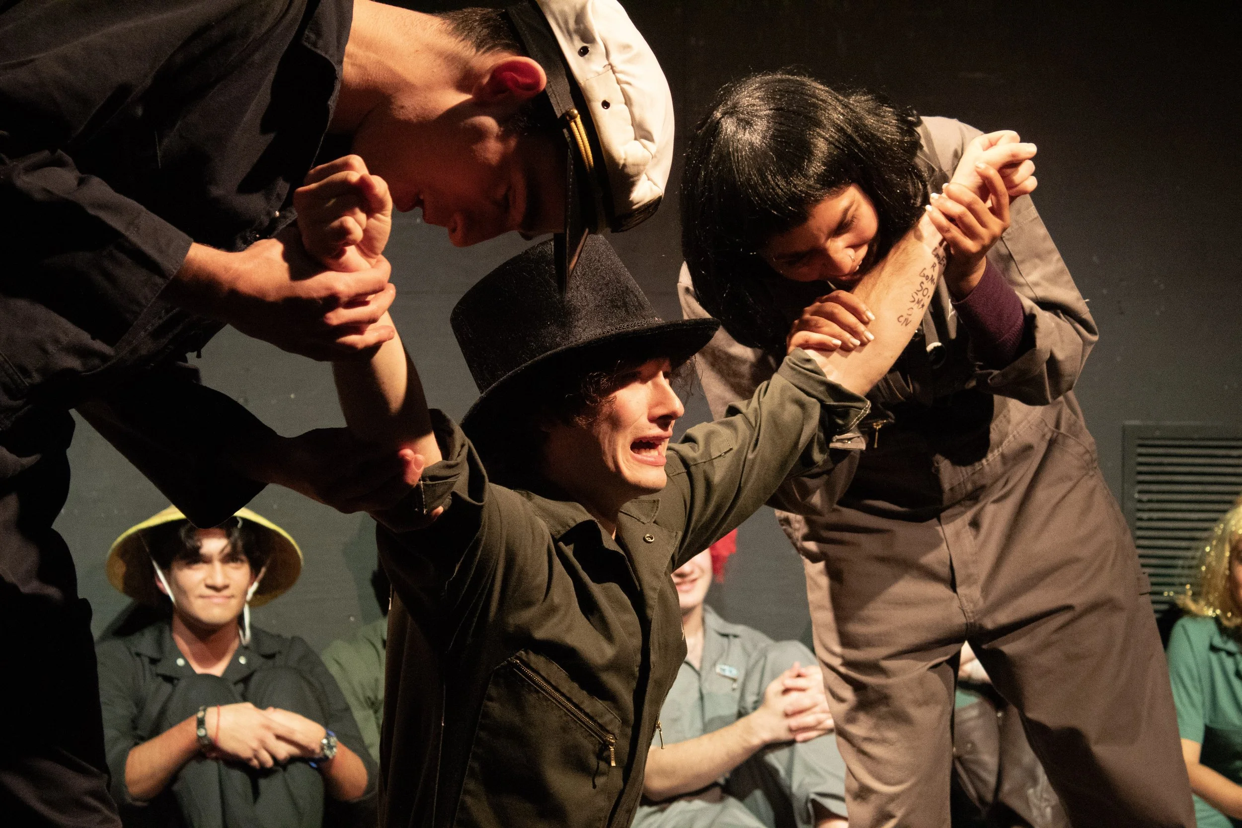 Our repertoire is enormous and varied, and we mix it up to keep the ~funny fresh~ at each new show. For instance, in the game “Rydell High,” a normal scene takes place until an audience volunteer shouts the code word Kenickie. Then, the improviser who was just talking has to burst into a song about their last sentence in whatever genre or artist that the audience suggests. This could be anything from pop or rap to blues or jazz to gregorian chant or opera! We start with shorter games and end each show with a full-blown, never-been-seen-before Broadway musical. This twenty-minute-long affair contains drama-filled scenes expressed through song and even improvised choreography, all based on a title suggested by the audience. From a world without numbers to union meetings in a soul cycle gym, who knows what’ll happen next when we hop onto the stage.